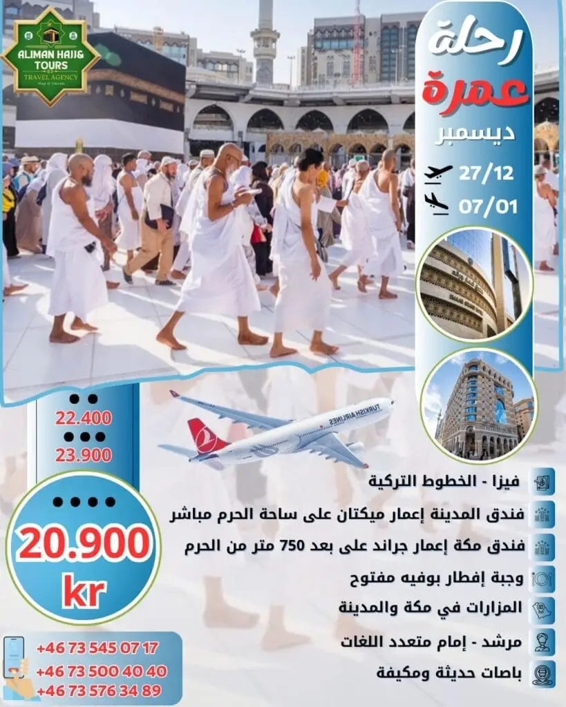 قسم العمرةعمرتك معنا غير عروض 2025 الرحلات 2025 عمرة شهر أغسطس عمرة شهر سيبتمبر عمرة شهر أوكتوبر عمرة شهرنوفمبر عمرة شهر ديسمبر عمرة شهر ديسمبر 2